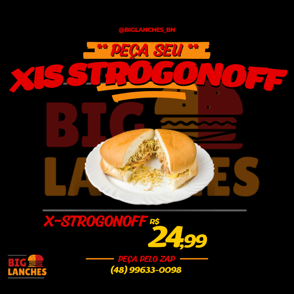 PÃO, MAIONESE DA CASA, STROGONOFF DE CARNE, QUEIJO, TOMATE, ELFACE, MILHO E BATATA PALHA.