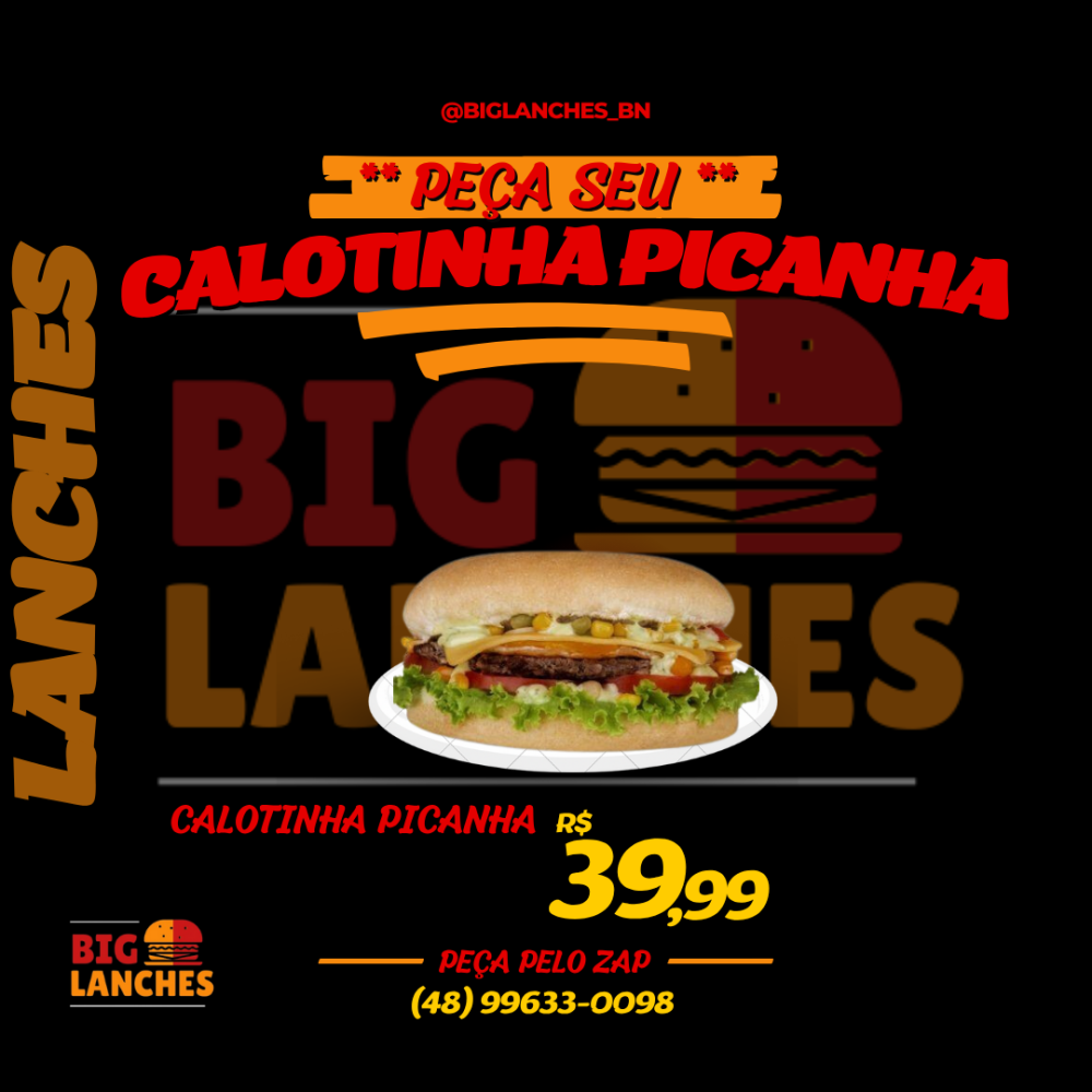PÃO GRANDE, MAIONESE DA CASA, PICANHA EM TIRAS, BBQ, TOMATE, ALFACE E MILHO.
